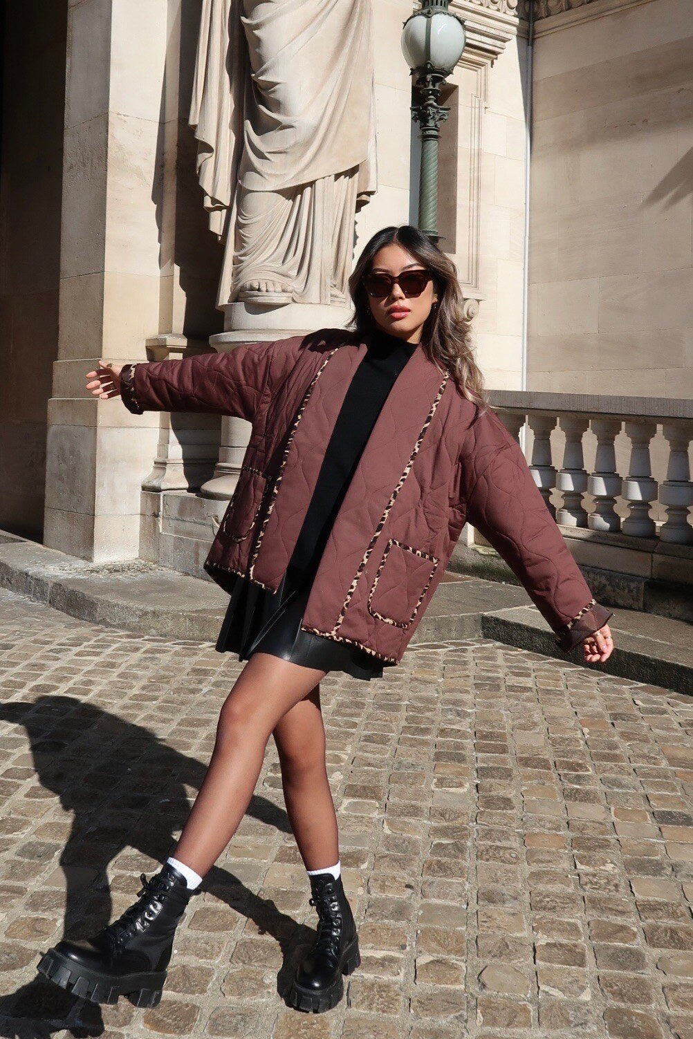 Gewatteerde open jas met lange mouwen, luipaardprint en twee zakken -